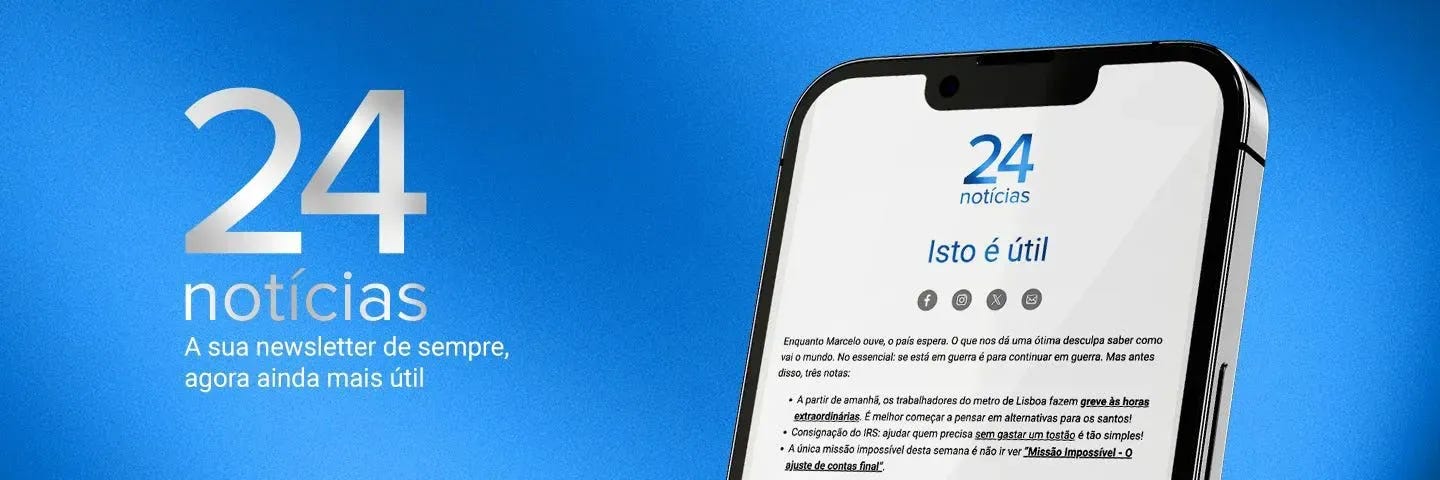 Assina a newsletter do 24notícias e recebe todos os dias no e-mail o essencial da atualidade informativa, com explicadores que ajudam a entender o que se passa no mundo e informações úteis, essenciais para tomar decisões no dia a dia.